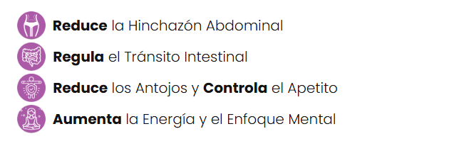 Ayuda a reducir la hinchazón abdominal, estimula el tránsito intestinal y favorece la eliminación de toxinas.